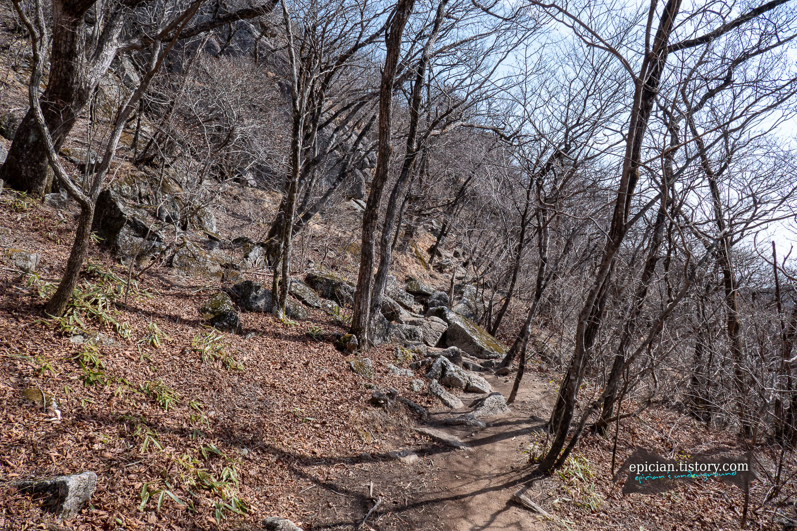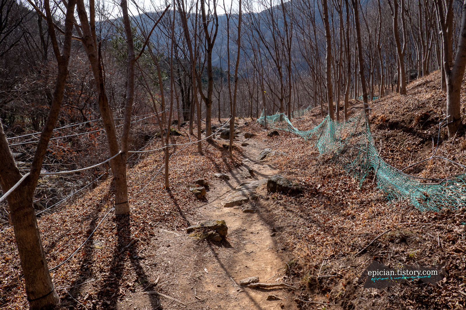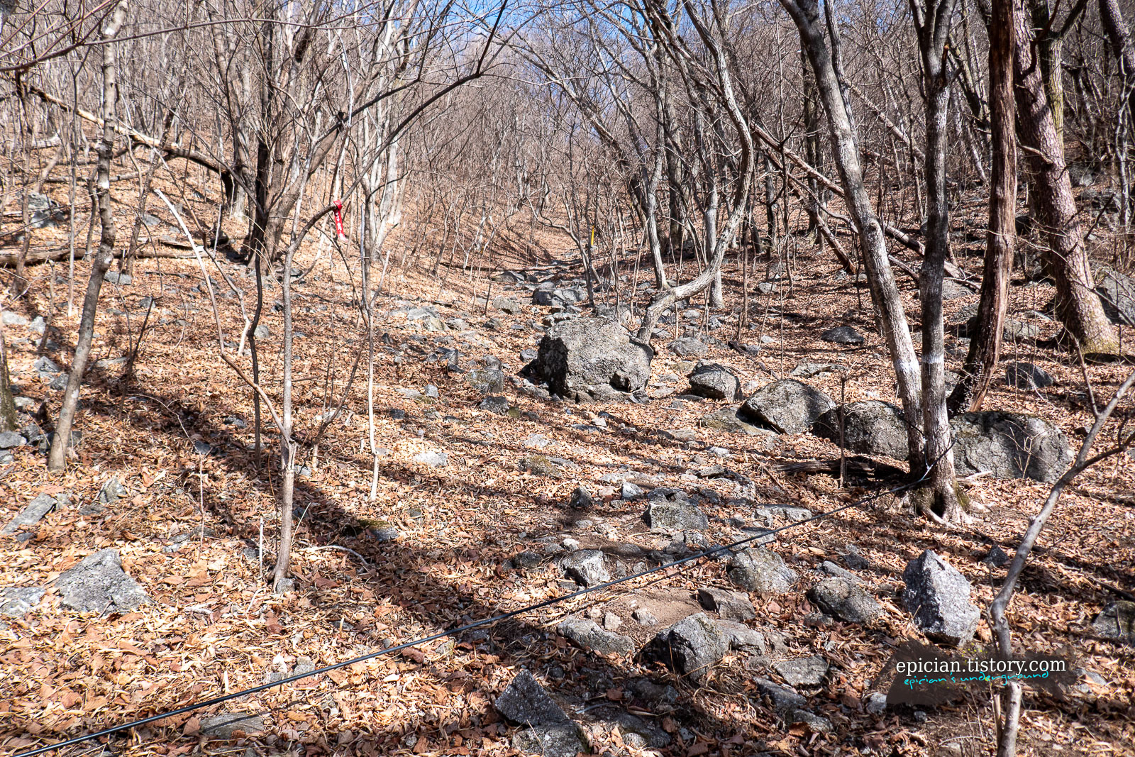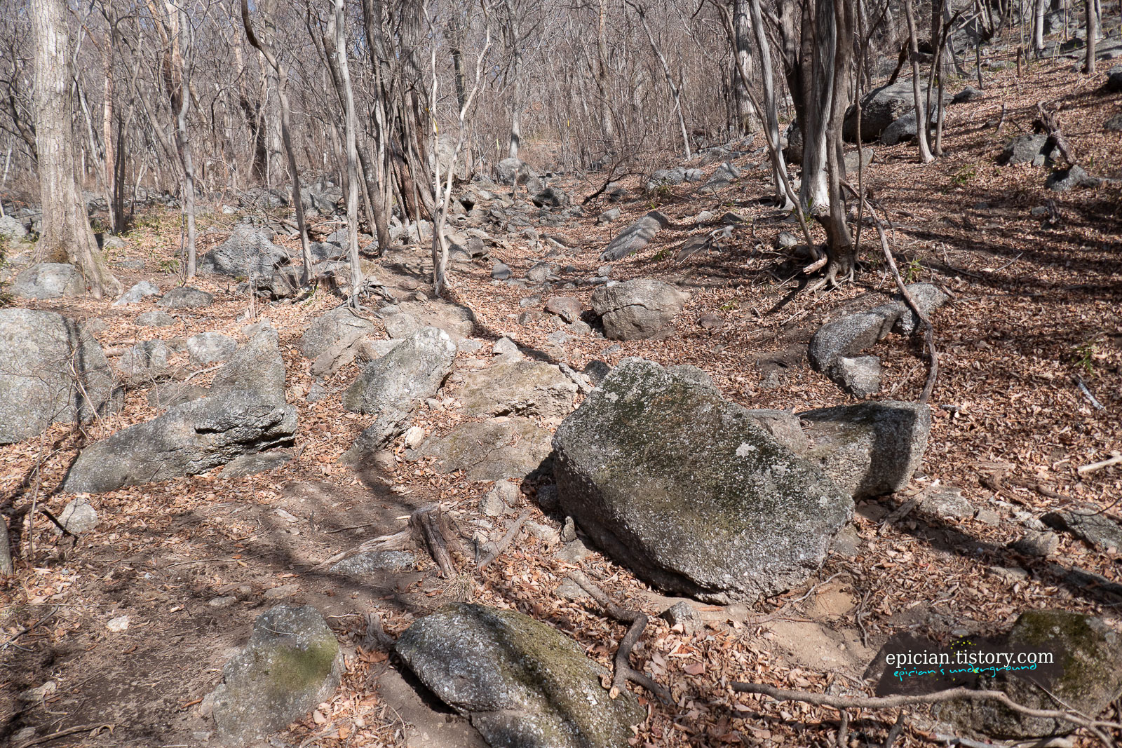 내 기억이 반만 맞았나 보다. 계단길을 지나니 여기도 등산로 정비 상태가 엉망이다. 내내 안 좋던 길이 숯가마터를 지나면서부터 조금 편안해진다.