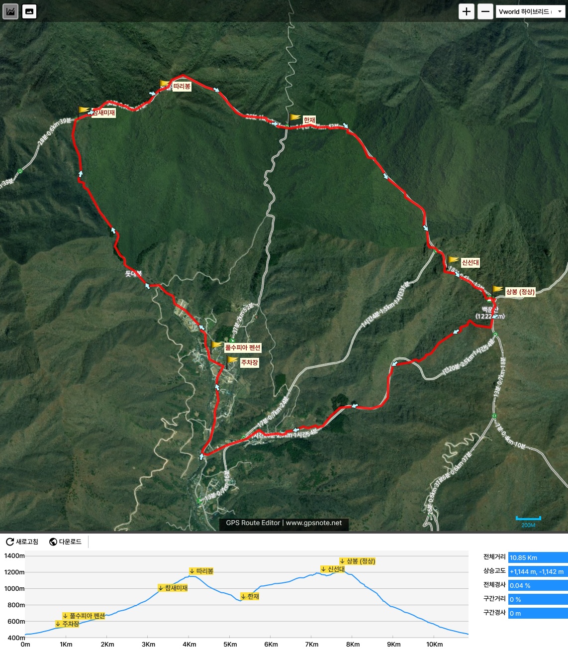 논실마을 부근에서 출발하여 참새미재, 따리봉, 한재를 거쳐 상봉을 거쳐서 내려오는 약 11km 정도의 코스로 6시간 20분 정도 소요됐다.