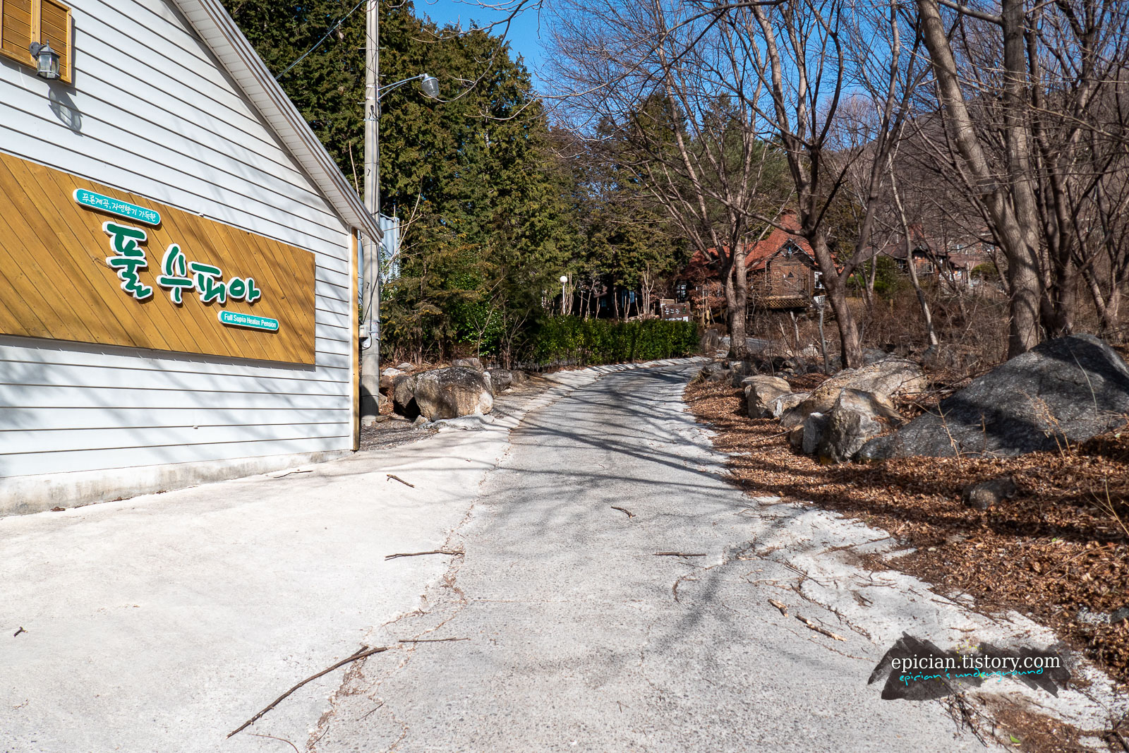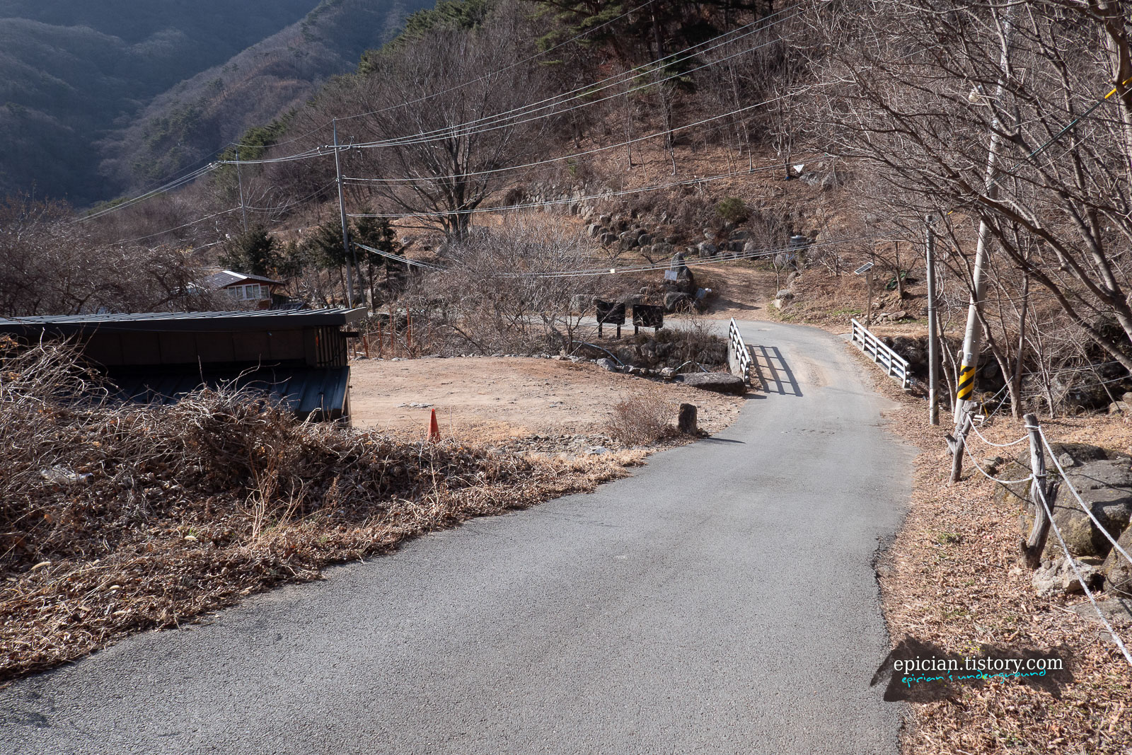 큰길을 따라 풀수피아 펜션을 찾아가면 그 옆으로 난 임도길을 따라서 따리봉 방향으로 갈 수 있다.