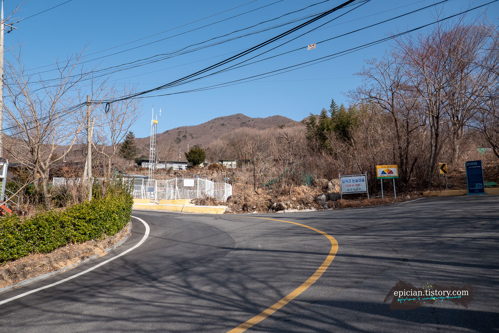 한재에 당도하니 마치 공원처럼 앉아 쉴 수 있는 시설물이 꽤 많다. 여기서 간단하게 점심을 먹고 이동했다. 바람은 조금 차갑지만, 따뜻한 햇볕덕에 무리 없이 쉴 수 있었다. 이미 봄이 꽤 가까이 왔다는 것을 실감했다.