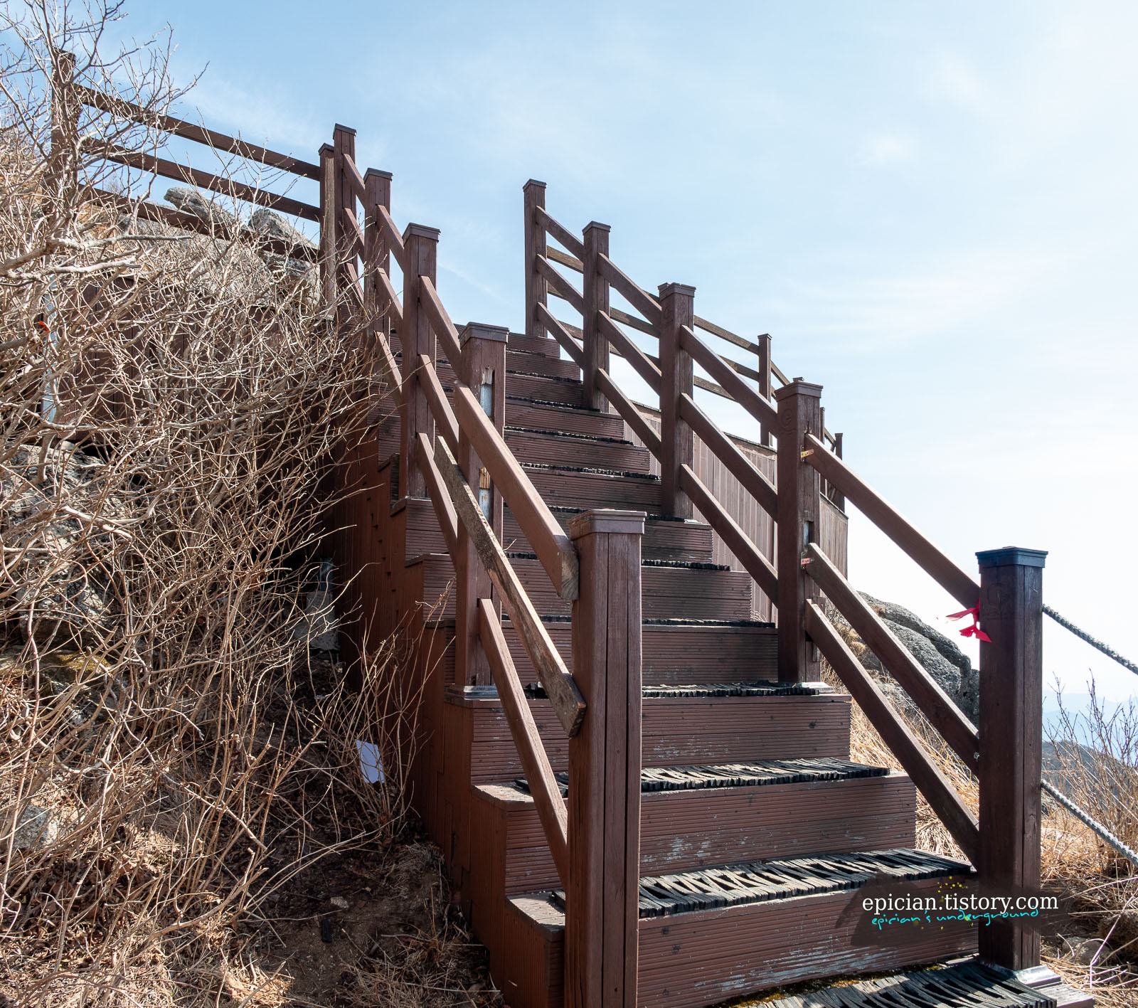 정상석 부근에 없던 계단도 놓여 있다. 지난번에 왔을 땐, 살얼음 탓에 미끄러워서 올라갈 엄두를 못 냈는데 이번엔 아주 편안하게 올랐다.